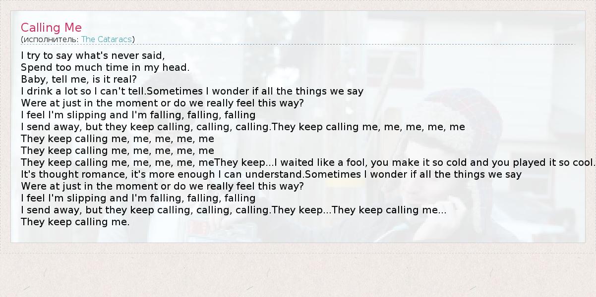 They keep calling me, me, me, me, meThey keep...I waited like a fool, you make it so cold and you played it so cool.