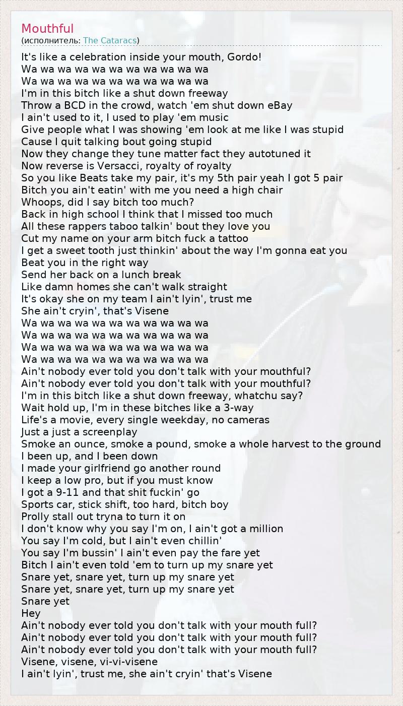 Это интересно:The Cataracs - американский хип-хоп инди-поп дуэт, сформированный в Беркли, Калифорния, состоящий из Дэвида “Campa” Бенджамин Синджер-Вайн - автор песен и вокалист и Найлс “Cyrano” Hollowell-Dhar - автор песен, вокалист и продюсер. Дуэт начинал как независимая группа в годы их учебы в Средней школе Беркли. Сначала они исполняли Indie-Pop. Они описывают свою музыку как "an everyday man's take on pop music."