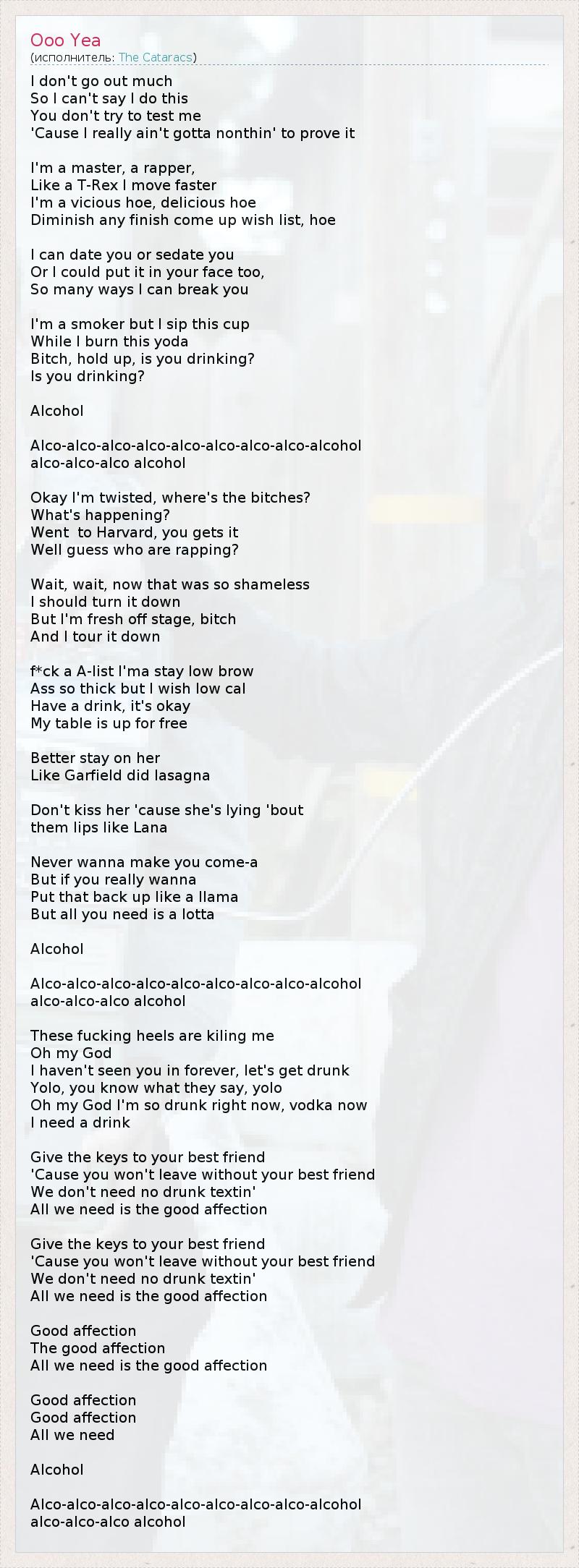 А как ты думаешь, о чем песня "Ooo Yea" ?