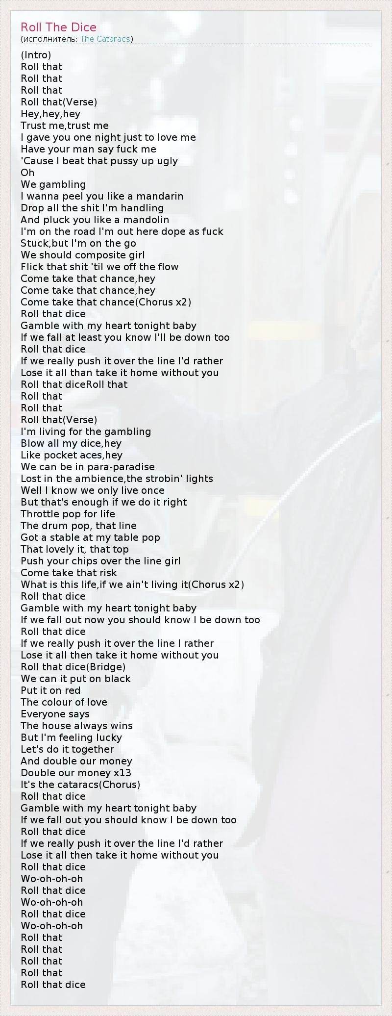 А как ты думаешь, о чем песня "Roll The Dice" ?