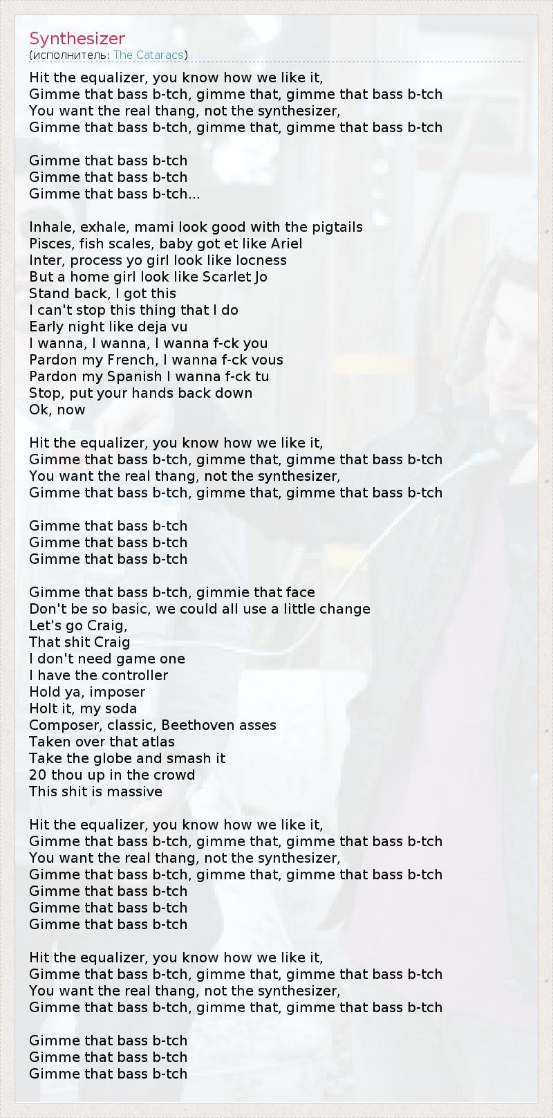 Gimme that bass b-tch, gimme that, gimme that bass b-tch