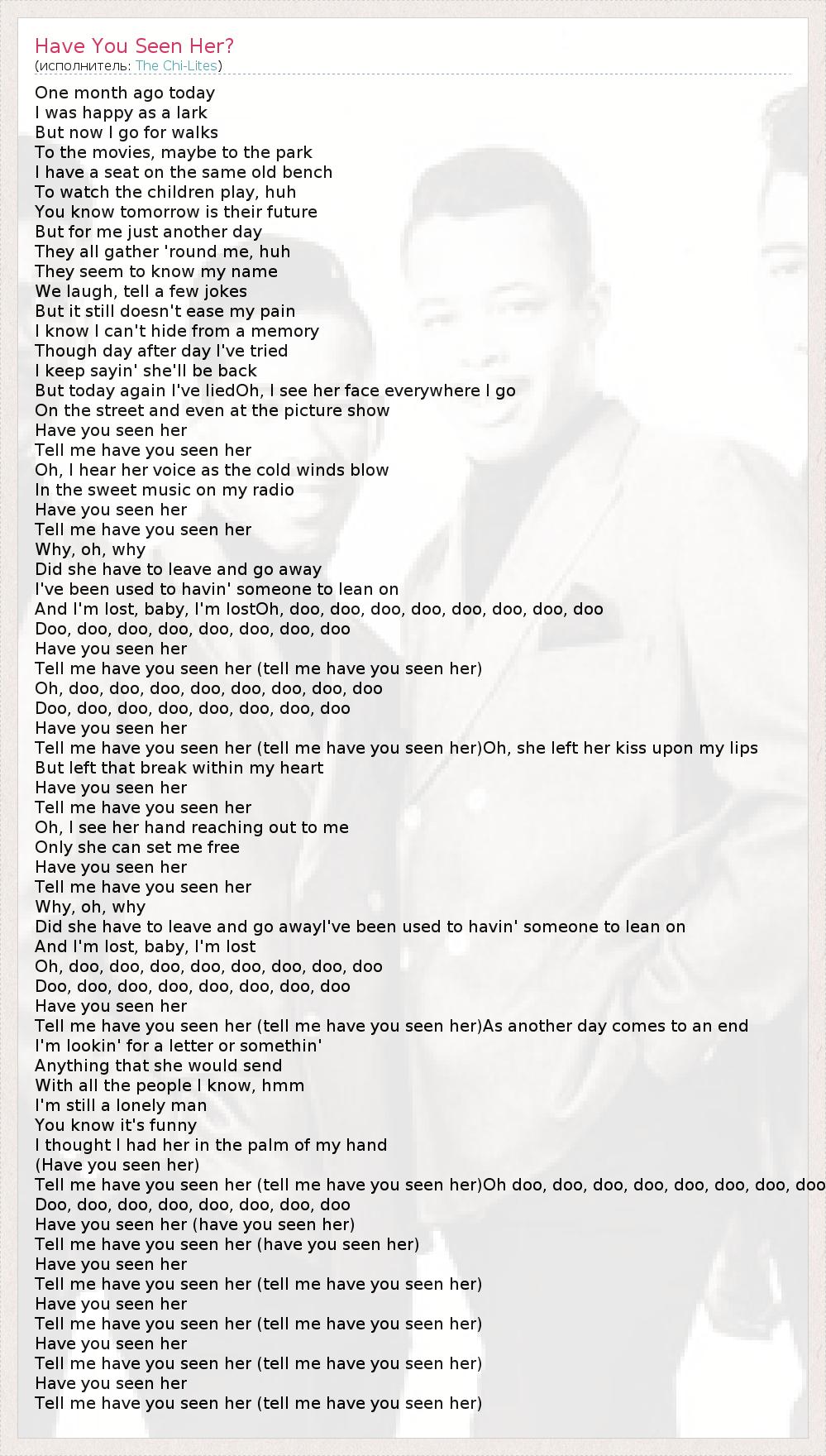 А как ты думаешь, о чем песня "Have You Seen Her?" ?