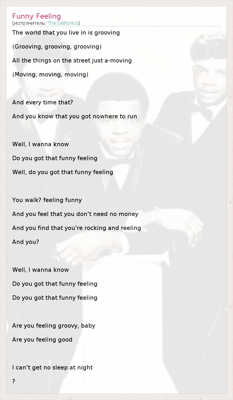 А как ты думаешь, о чем песня "Funny Feeling" ?
