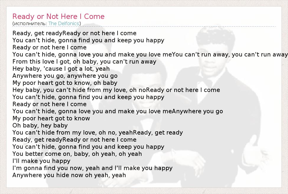 А как ты думаешь, о чем песня "Ready or Not Here I Come" ?