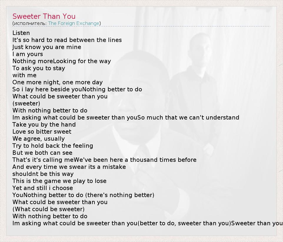 А как ты думаешь, о чем песня "Sweeter Than You" ?