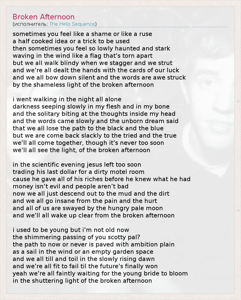 А как ты думаешь, о чем песня "Broken Afternoon" ?