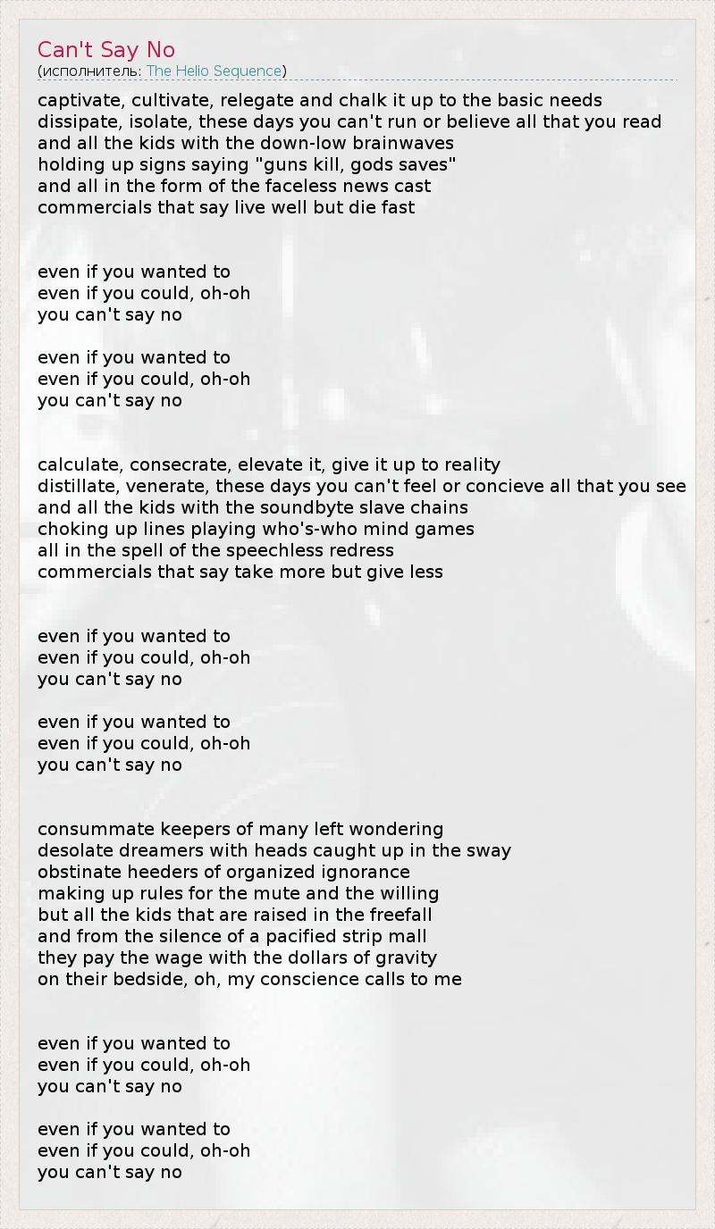 А как ты думаешь, о чем песня "Can't Say No" ?