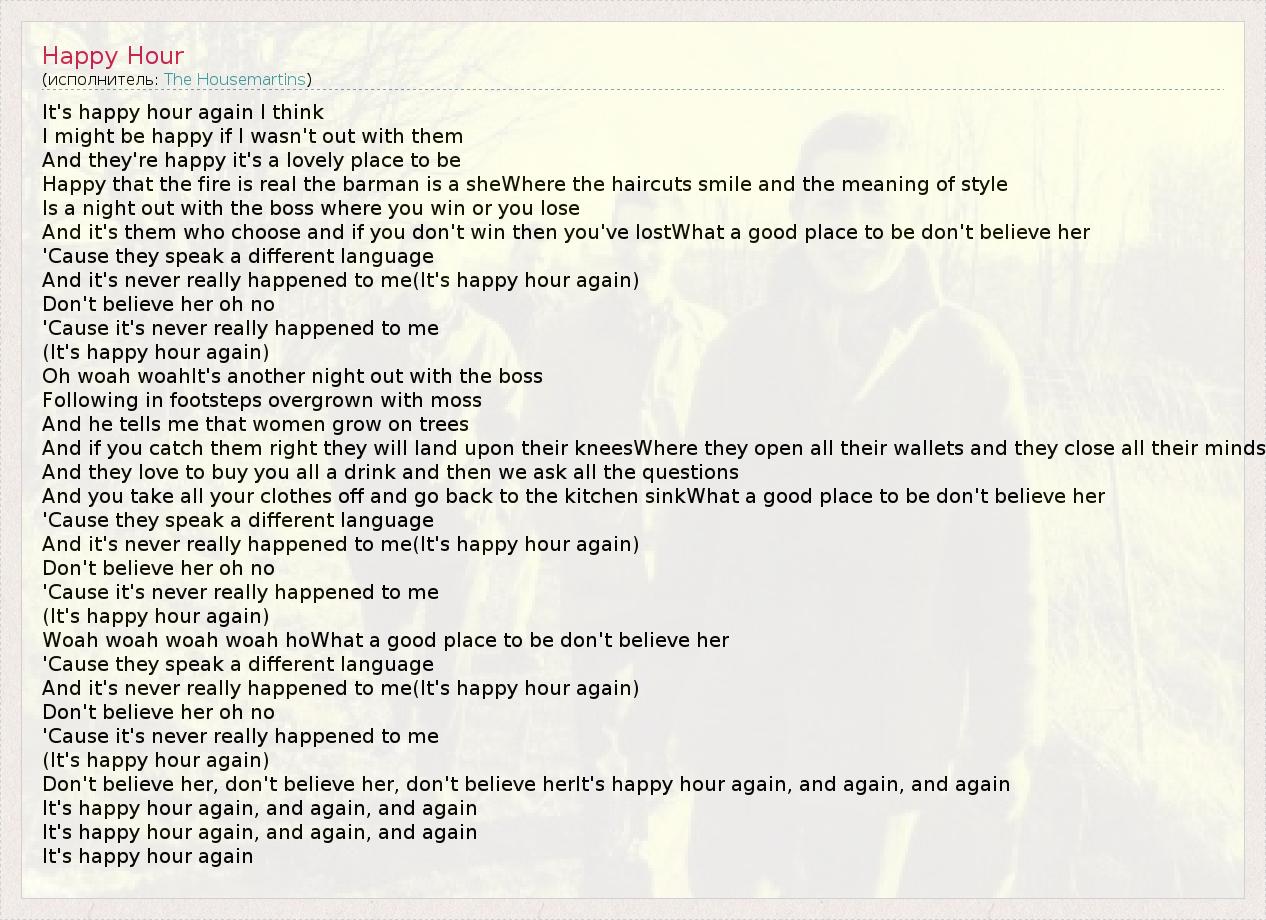 А как ты думаешь, о чем песня "Happy Hour" ?