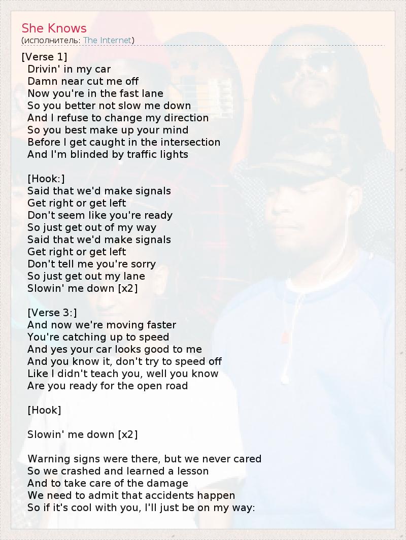 Это интересно:the Internet - электронный дуэт, состоящий из двух участников Лос-Анджелесской хип-хоп группировки Odd Future Wolf Gang Kill Them All (aka OFWGKTA) - Syd tha Kyd и Matt Martians. Мелодичный хип-хоп с женским соул вокалом.