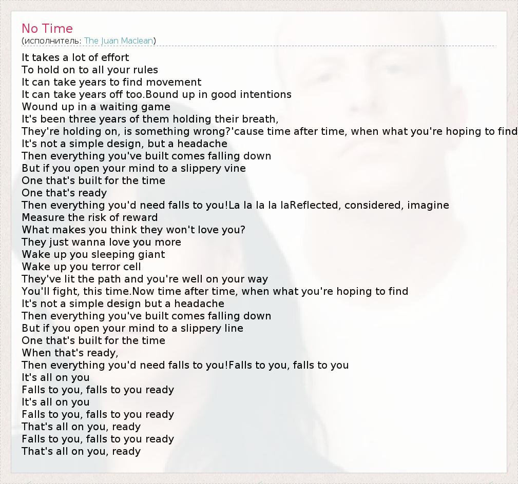 А как ты думаешь, о чем песня "No Time" ?
