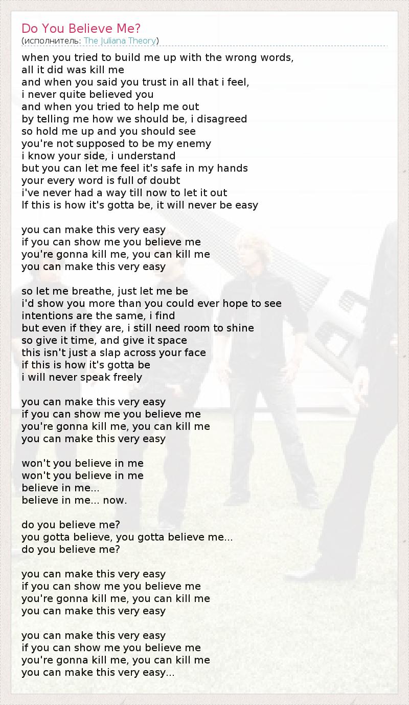 А как ты думаешь, о чем песня "Do You Believe Me?" ?