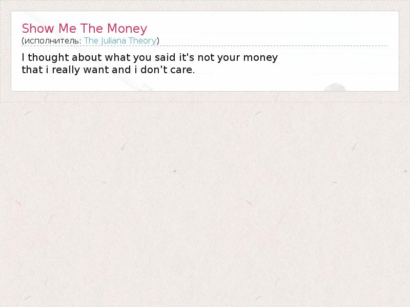 А как ты думаешь, о чем песня "Show Me The Money" ?