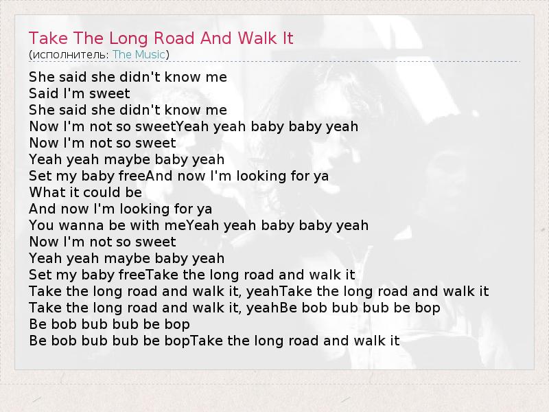 А как ты думаешь, о чем песня "Take The Long Road And Walk It" ?