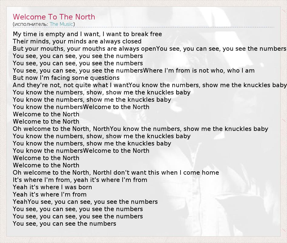 А как ты думаешь, о чем песня "Welcome To The North" ?