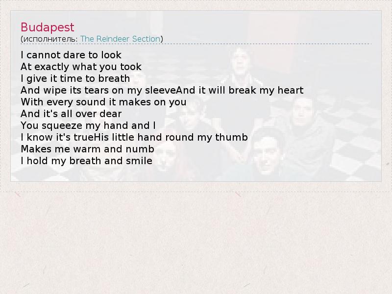 А как ты думаешь, о чем песня "Budapest" ?