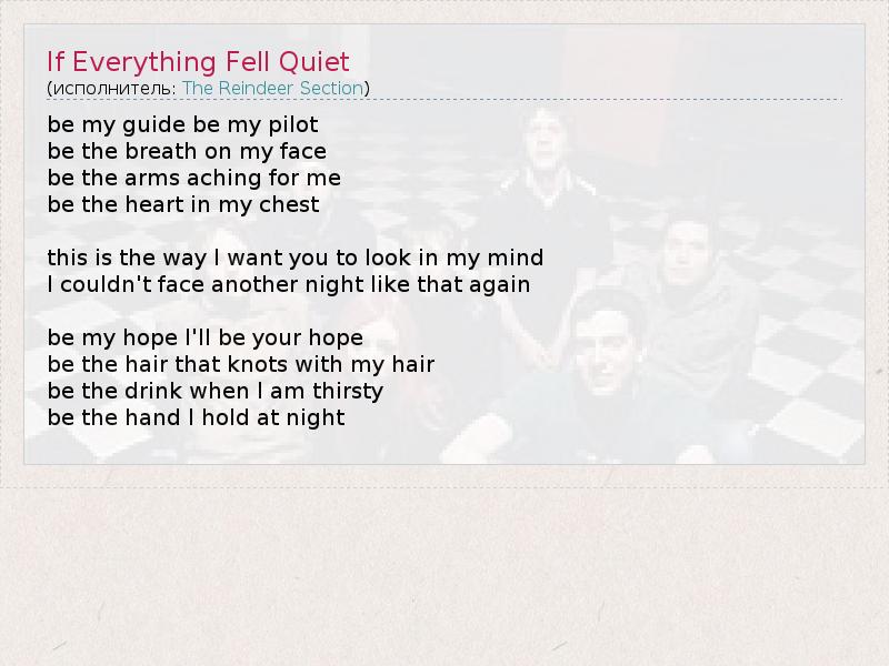 А как ты думаешь, о чем песня "If Everything Fell Quiet" ?
