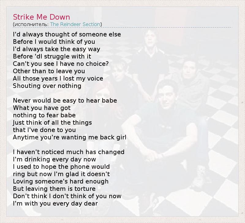 А как ты думаешь, о чем песня "Strike Me Down" ?
