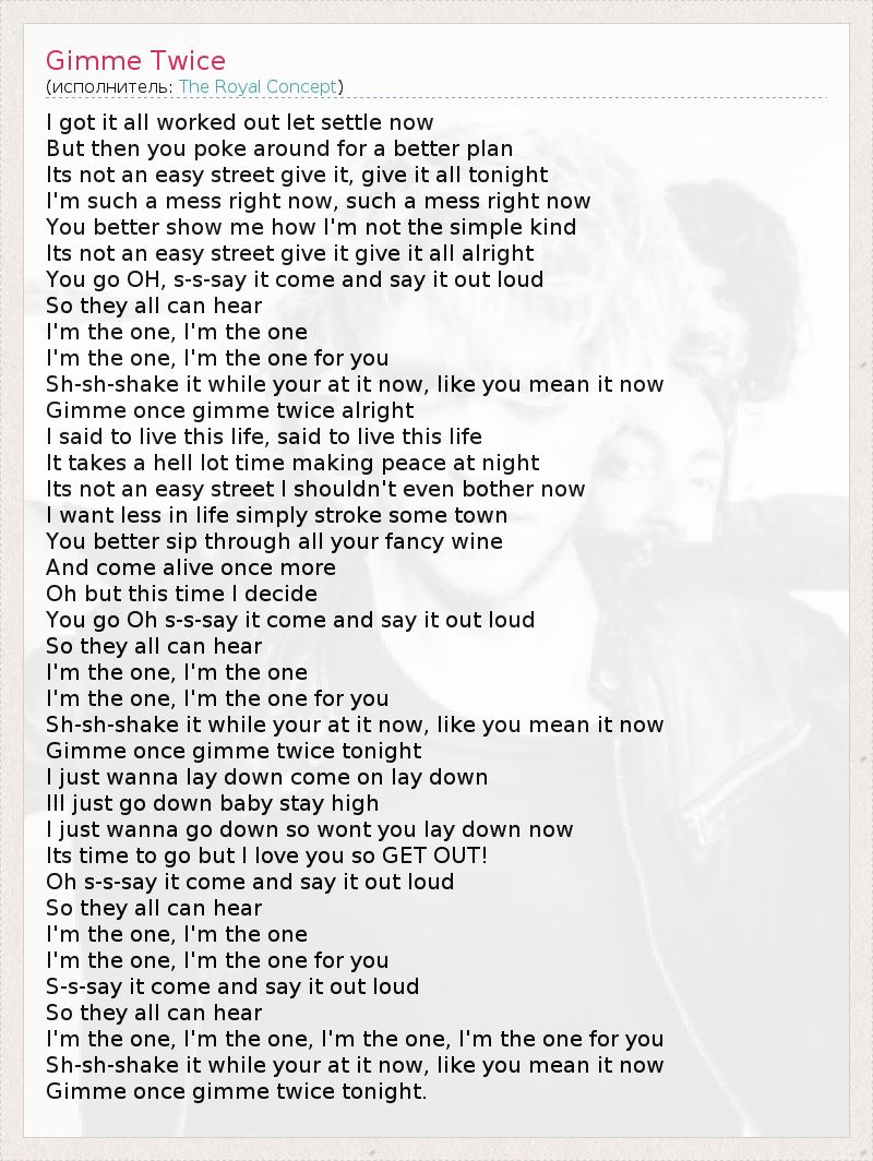 А как ты думаешь, о чем песня "Gimme Twice" ?
