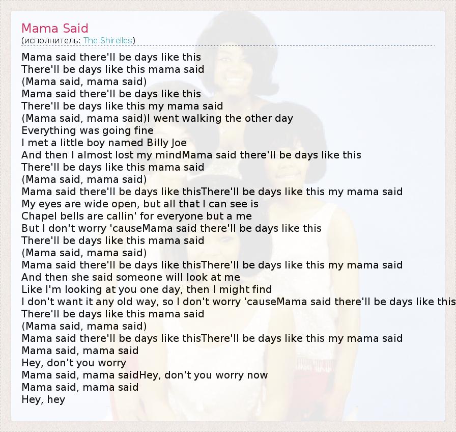 Mama said there'll be days like thisThere'll be days like this my mama said