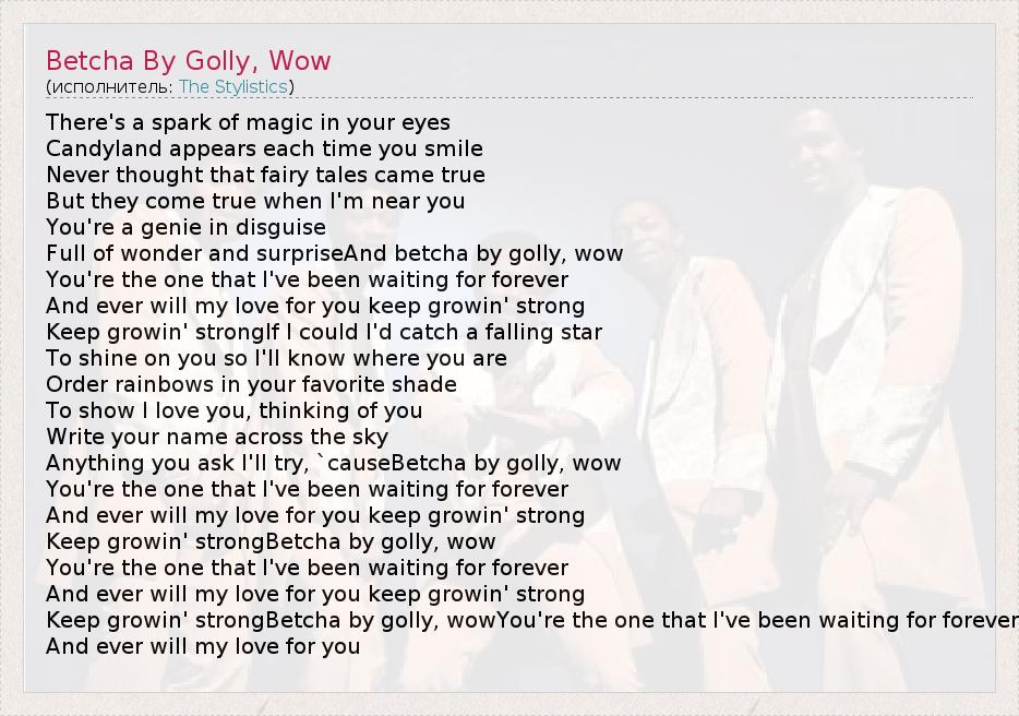 А как ты думаешь, о чем песня "Betcha By Golly, Wow" ?