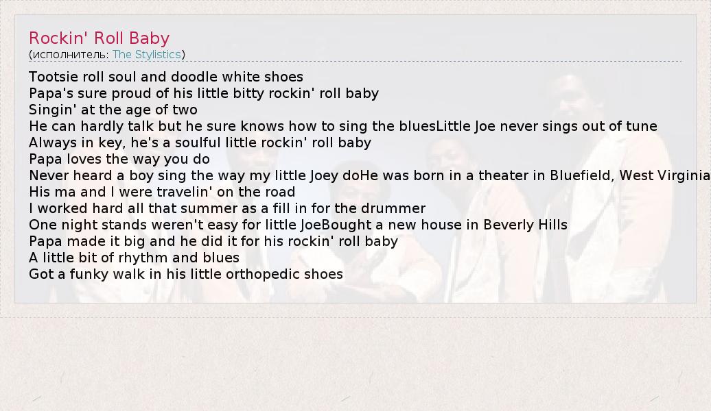 А как ты думаешь, о чем песня "Rockin' Roll Baby" ?