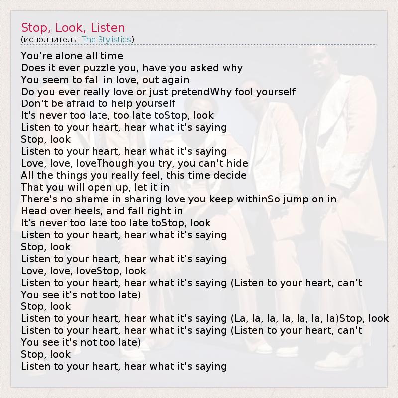 А как ты думаешь, о чем песня "Stop, Look, Listen" ?