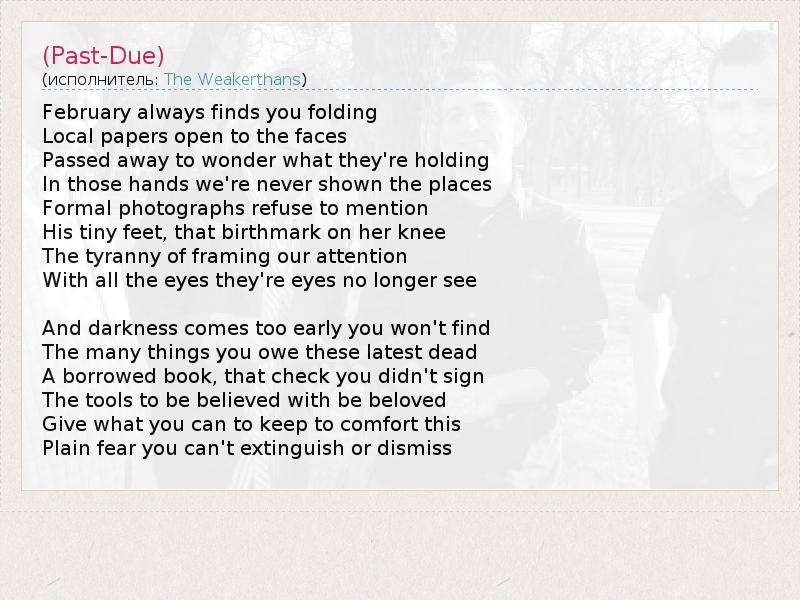 А как ты думаешь, о чем песня "(Past-Due)" ?