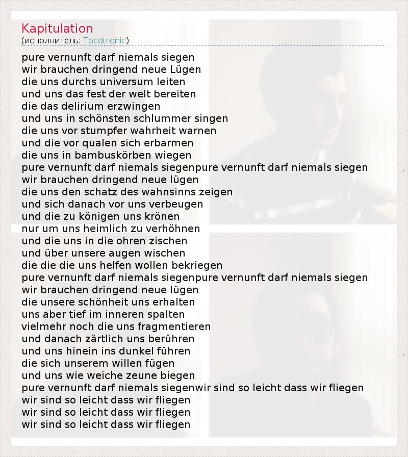 А как ты думаешь, о чем песня "Kapitulation" ?