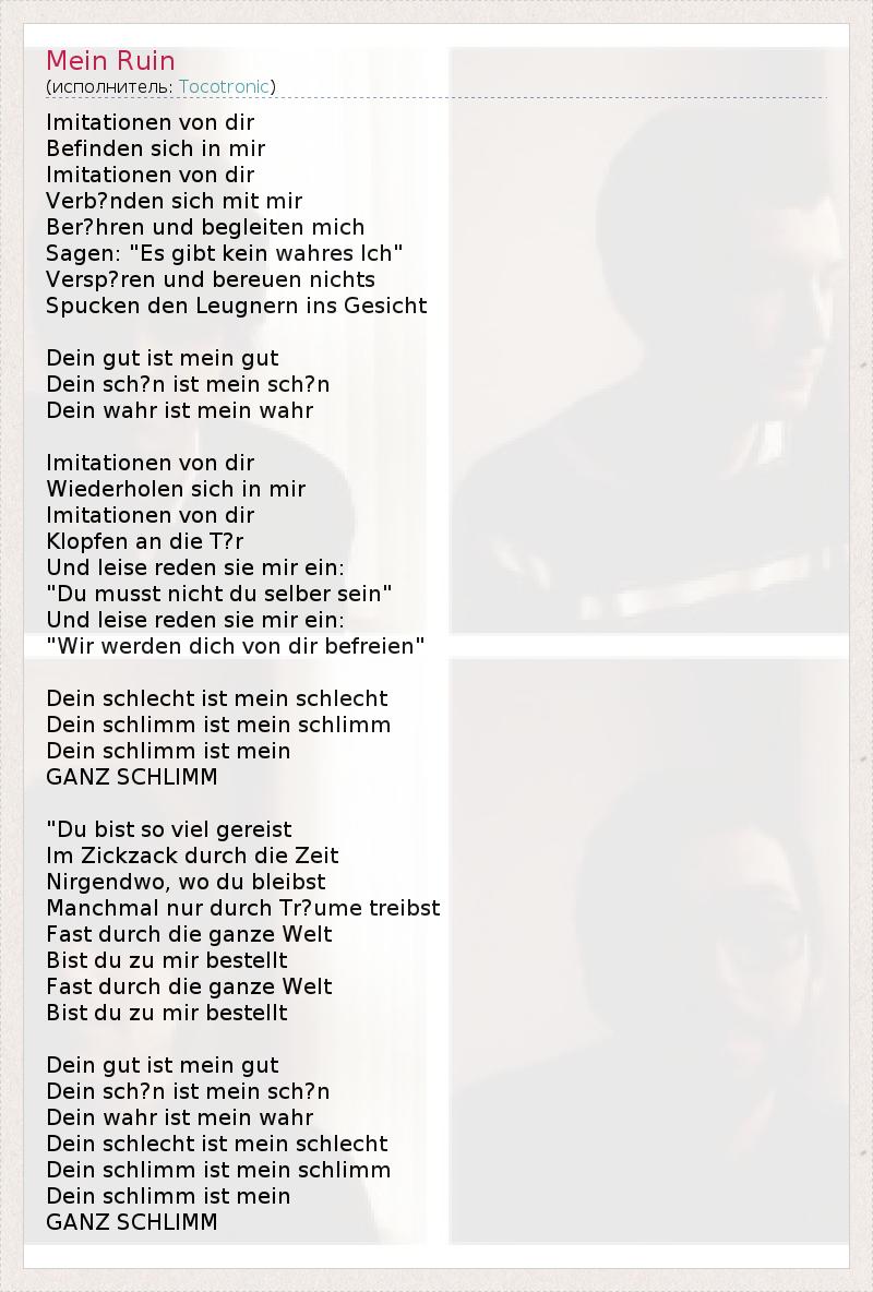 А как ты думаешь, о чем песня "Mein Ruin" ?
