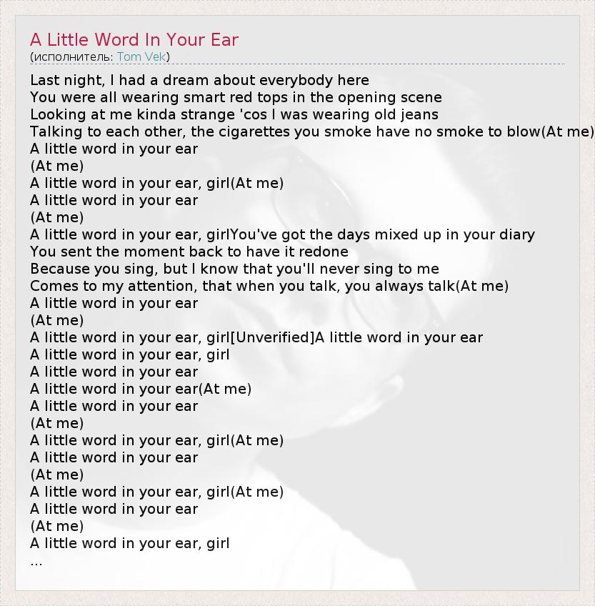 ГлавнаяИсполнителиTom VekA Little Word In Your Ear