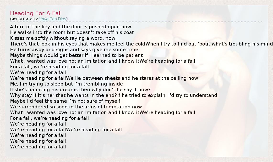 А как ты думаешь, о чем песня "Heading For A Fall" ?