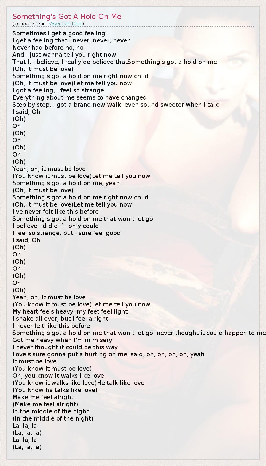 ГлавнаяИсполнителиVaya Con DiosSomething's Got A Hold On Me