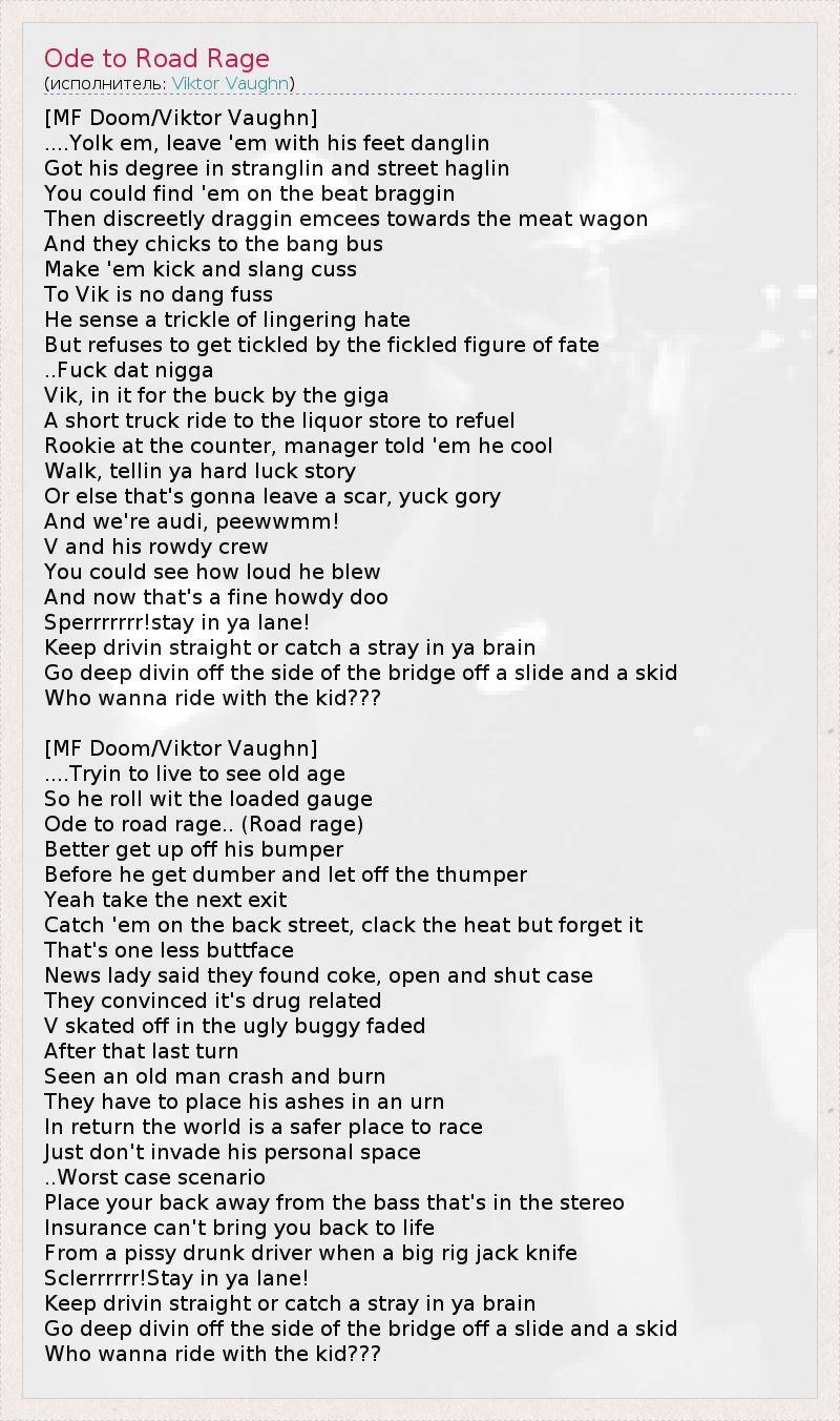 А как ты думаешь, о чем песня "Ode to Road Rage" ?