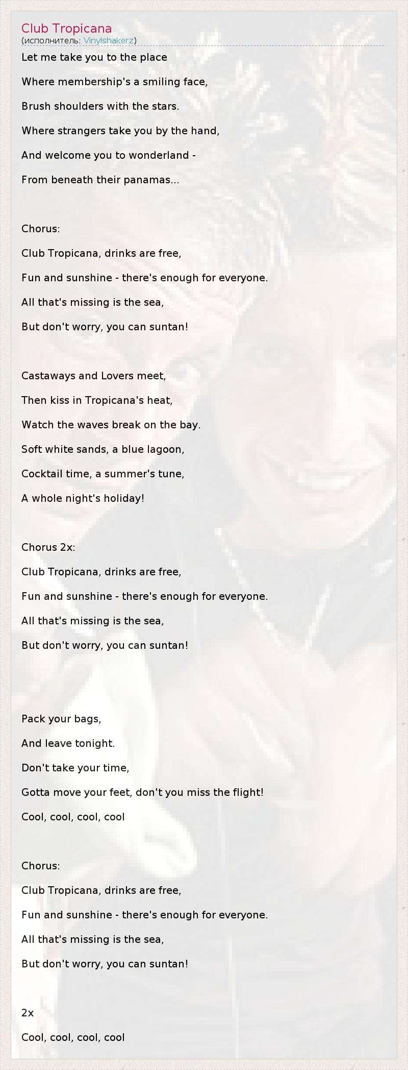 А как ты думаешь, о чем песня "Club Tropicana" ?