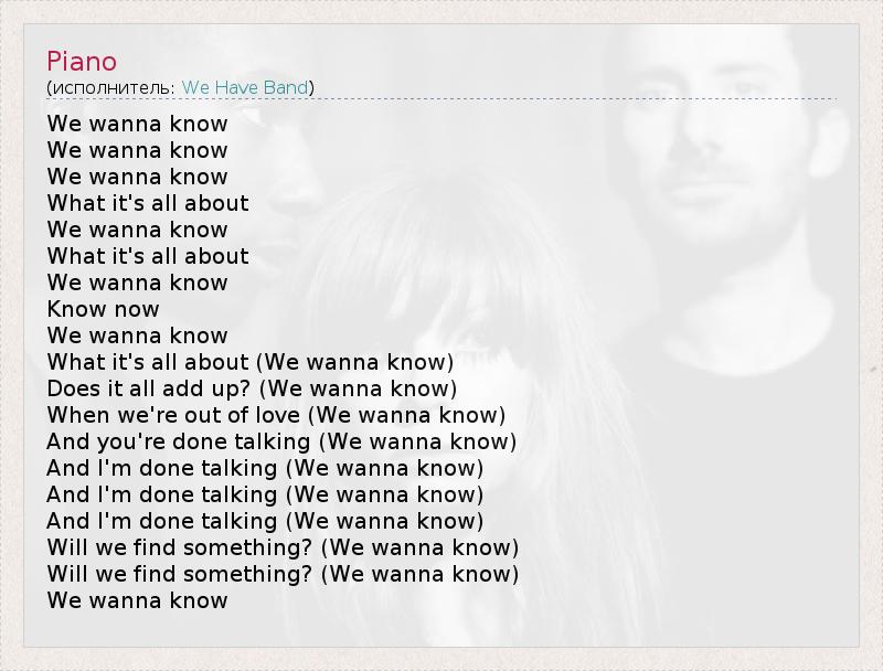 We wanna know