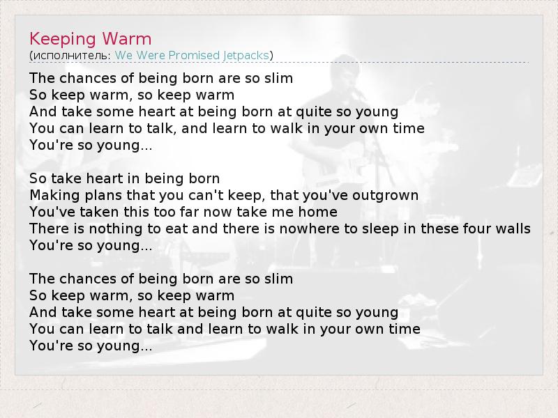 А как ты думаешь, о чем песня "Keeping Warm" ?