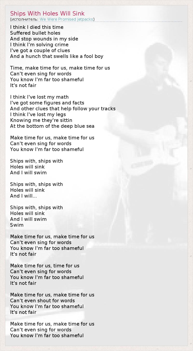 А как ты думаешь, о чем песня "Ships With Holes Will Sink" ?