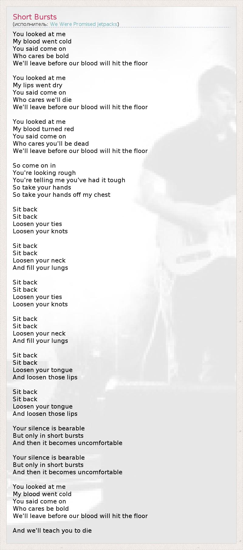 А как ты думаешь, о чем песня "Short Bursts" ?
