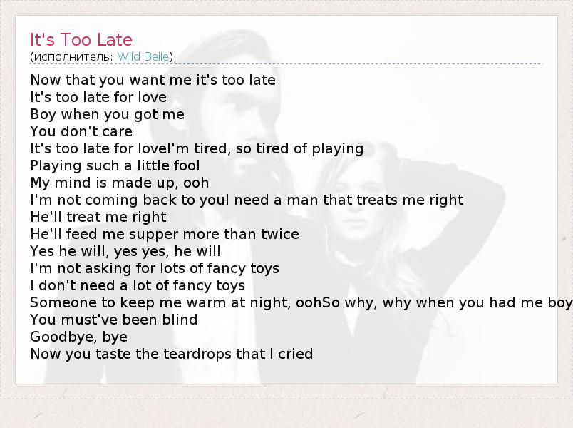 А как ты думаешь, о чем песня "It's Too Late" ?
