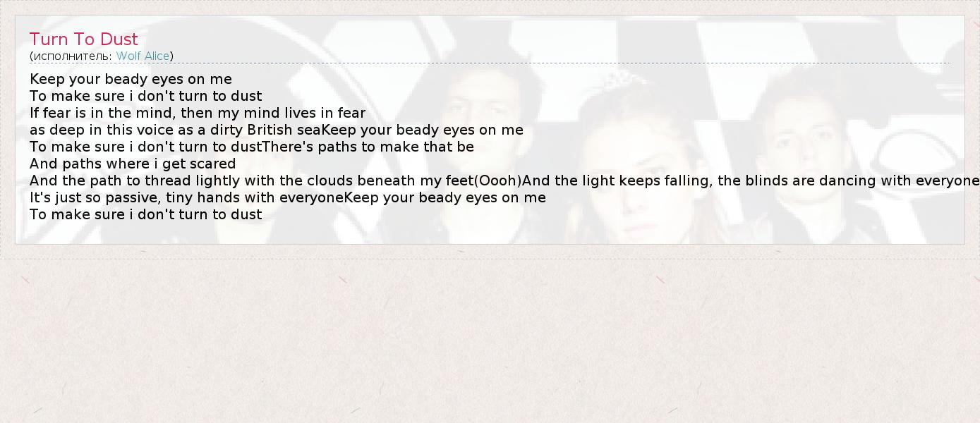 А как ты думаешь, о чем песня "Turn To Dust" ?