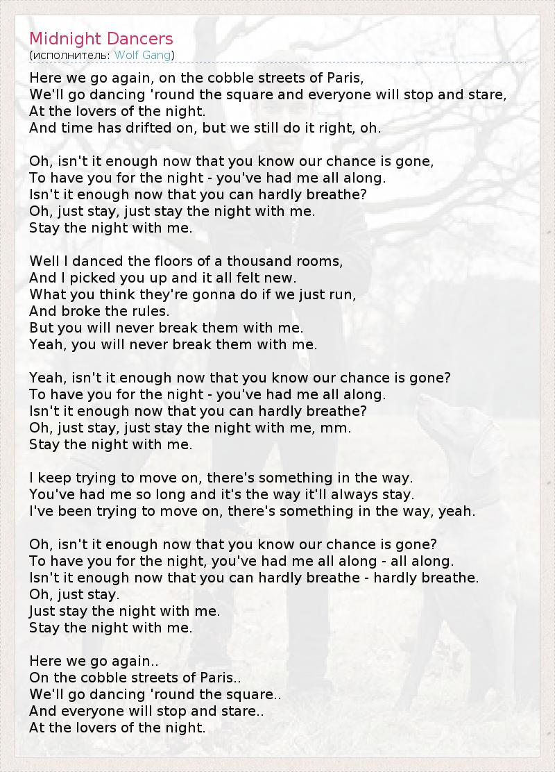 А как ты думаешь, о чем песня "Midnight Dancers" ?