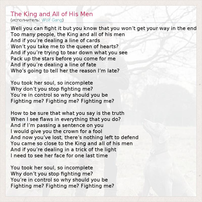 А как ты думаешь, о чем песня "The King and All of His Men" ?