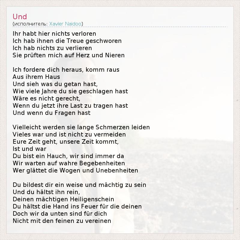 Это интересно:В 1998 году его дебютный альбом, написанный и записанный на немецком языке, более года продержался в лучшей двадцатке немецкого чарта и разошелся тиражом более миллиона экземпляров. Такого успеха и признания слушателей давно не имели артисты, поющие на немецком языке.Хотя самого Ксавьера Найду трудно назвать немцем в прямом смысле слова. Ведь в его жилах течет ирландская и индийская... продолжение