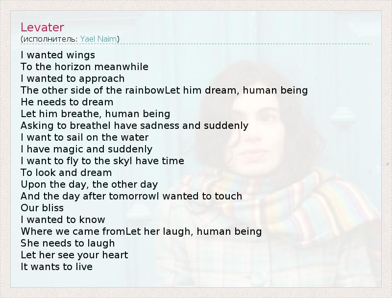 Это интересно:Yael Naim – израильско-французская исполнительница песен собственного сочинения. Певица получила мировую известность в 2008 благодаря тому, что ее песню «New Soul» компания «Apple» использовала для презентации ноутбука MacBook Air. Успех композиции сделал Yael Naim первой израильской певицей, занявшей высшие места в музыкальных чартах США.История Yael Naim родилась... продолжение