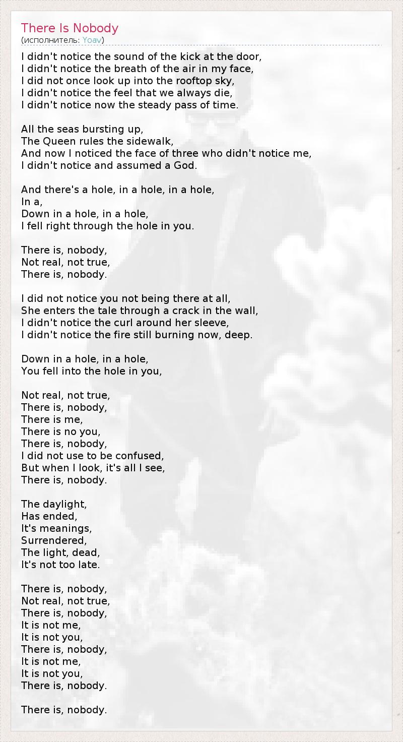 А как ты думаешь, о чем песня "There Is Nobody" ?
