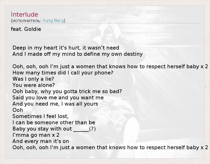 Ooh, ooh, ooh I'm just a women that knows how to respect herself baby x 2