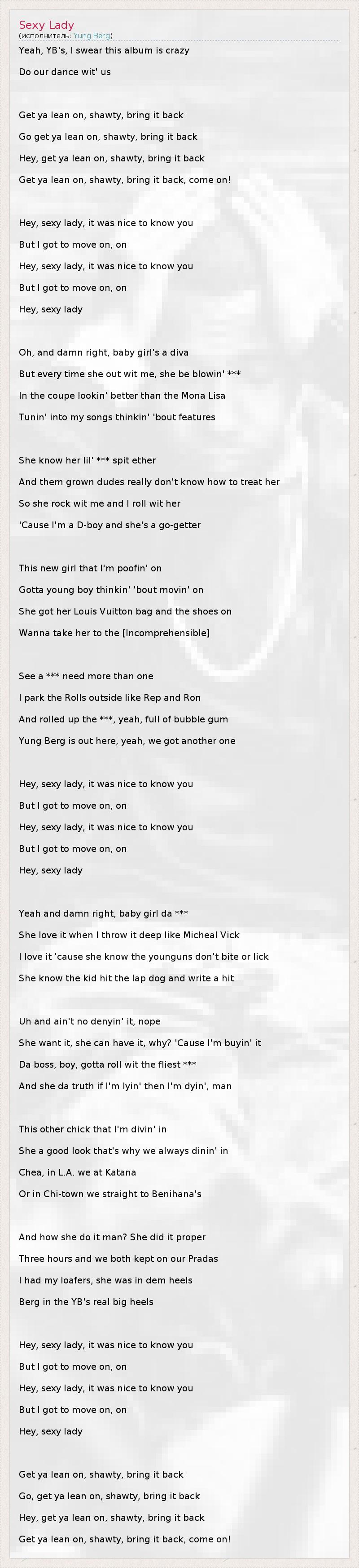 А как ты думаешь, о чем песня "Sexy Lady" ?