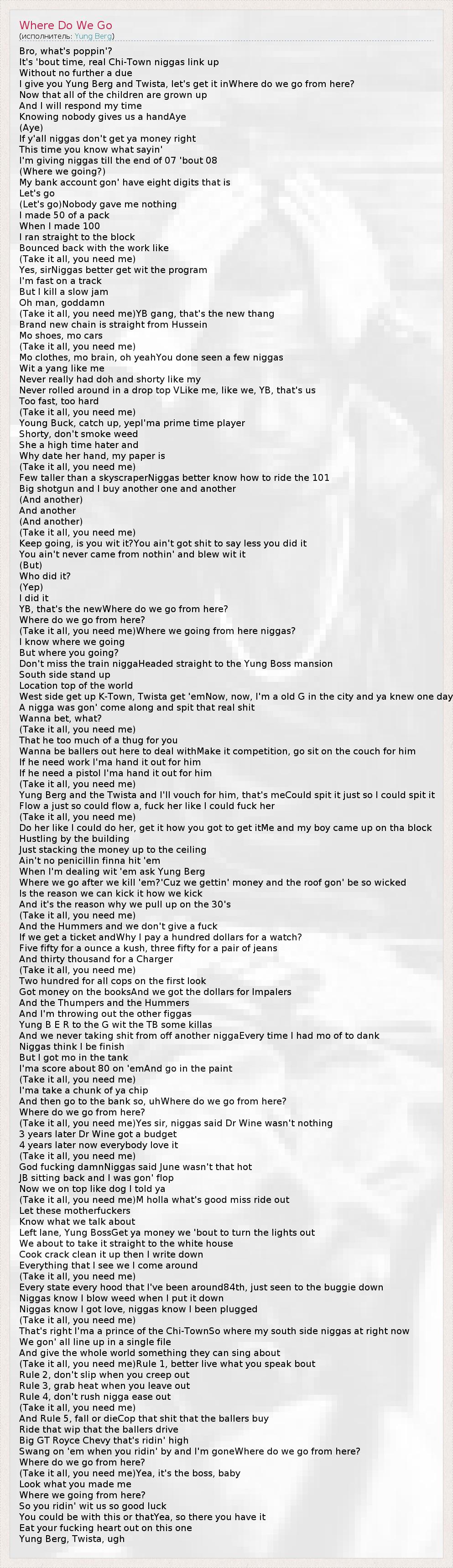 Swang on 'em when you ridin' by and I'm goneWhere do we go from here?