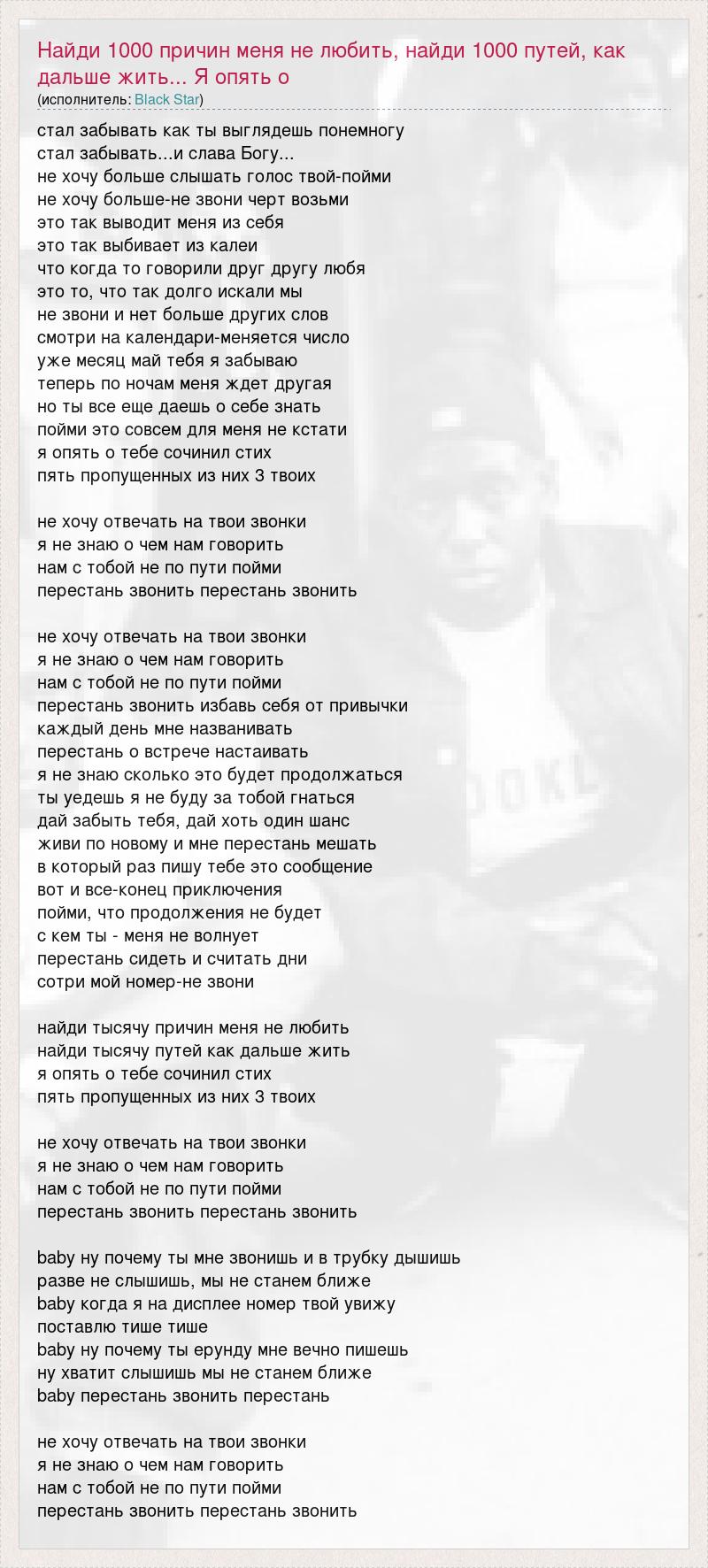Главная→Исполнители→Black Star→Найди 1000 причин меня не любить, найди 1000 путей, как дальше жить... Я