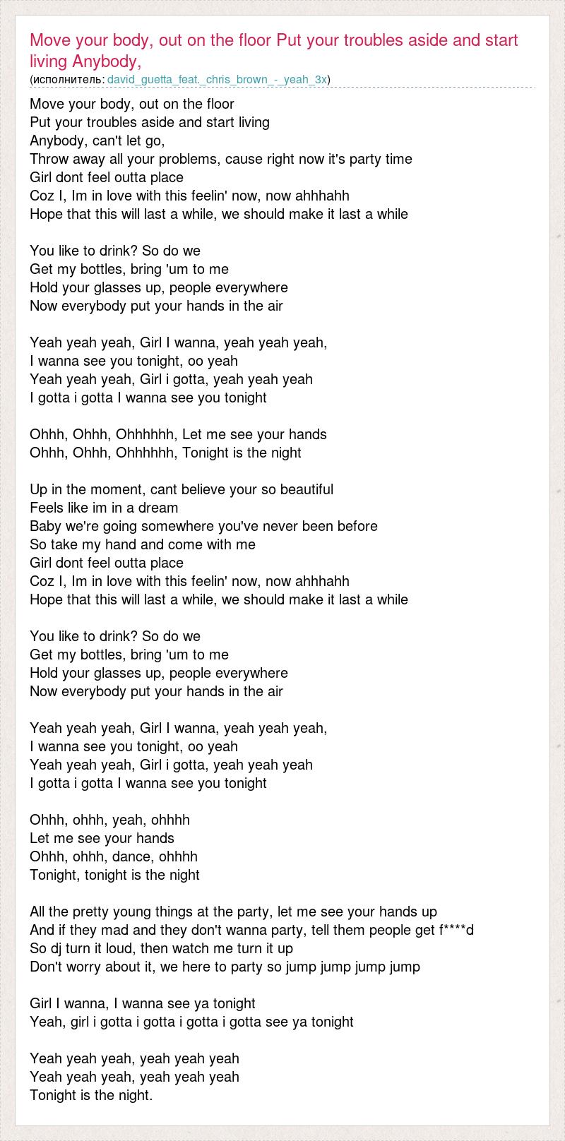 А как ты думаешь, о чем песня "Move your body, out on the floor" ?
